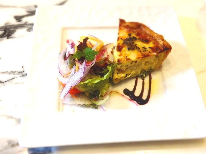 ・トリュフ香る深谷葱と無塩せきベーコンのキッシュ 信州高原野菜のサラダ ぶどうヴィネガードレッシング