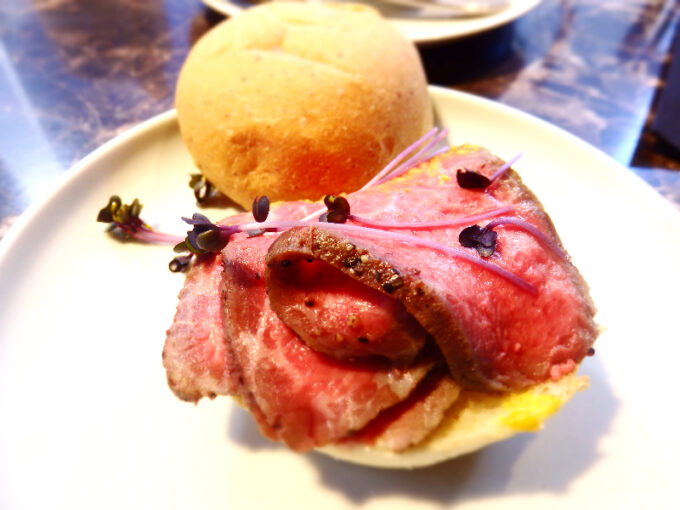 バーガーとか、ボリューミーで男性にもおすすめなダンヒルのアフタヌーンティー。
