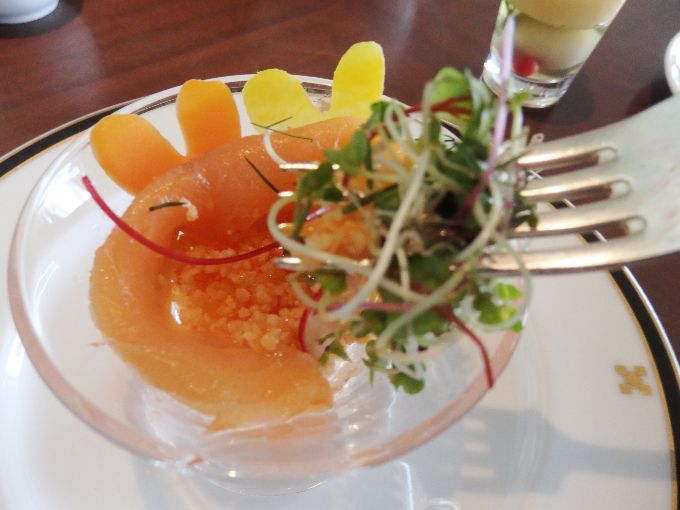 ・トリュフたまごクリーム 鴨のスモーク トマトコンソメジュレ