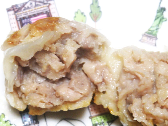 肉シューマイ4個とカニ・エビシューマイ4個、合計8個入ってました(≧▽≦)!